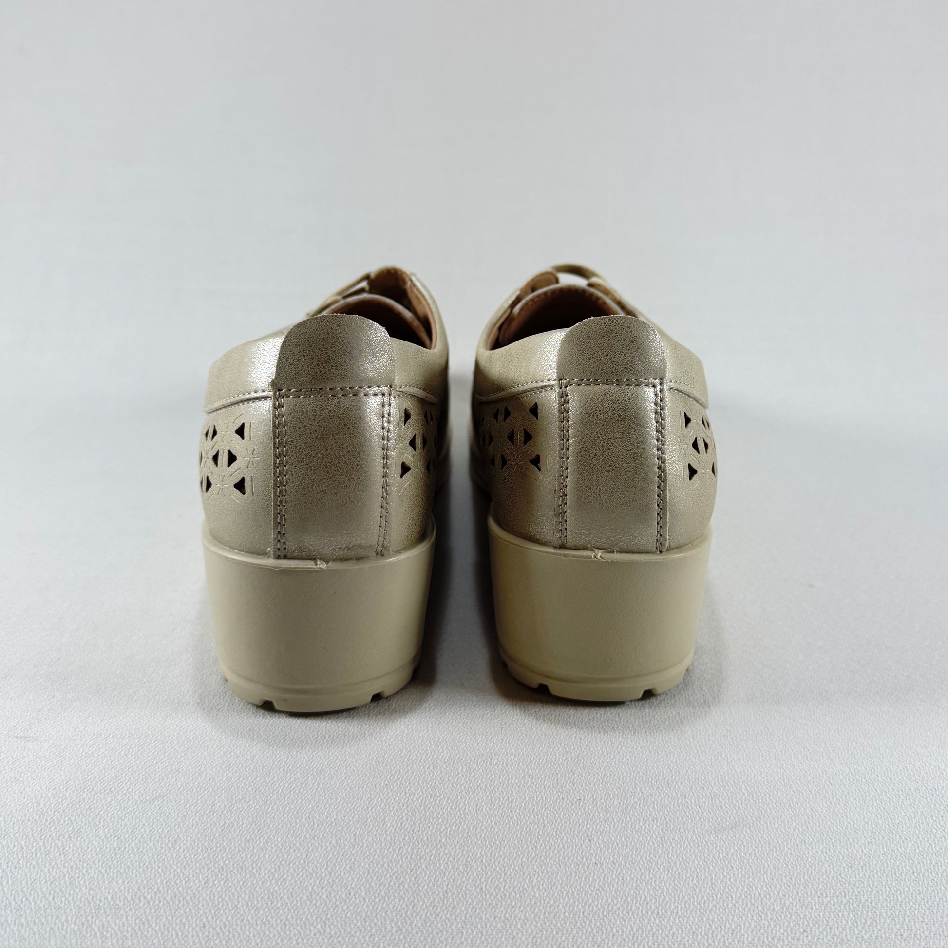 Comodidad con Altura: Suela de cuña ligera que estiliza sin sacrificar el confort.