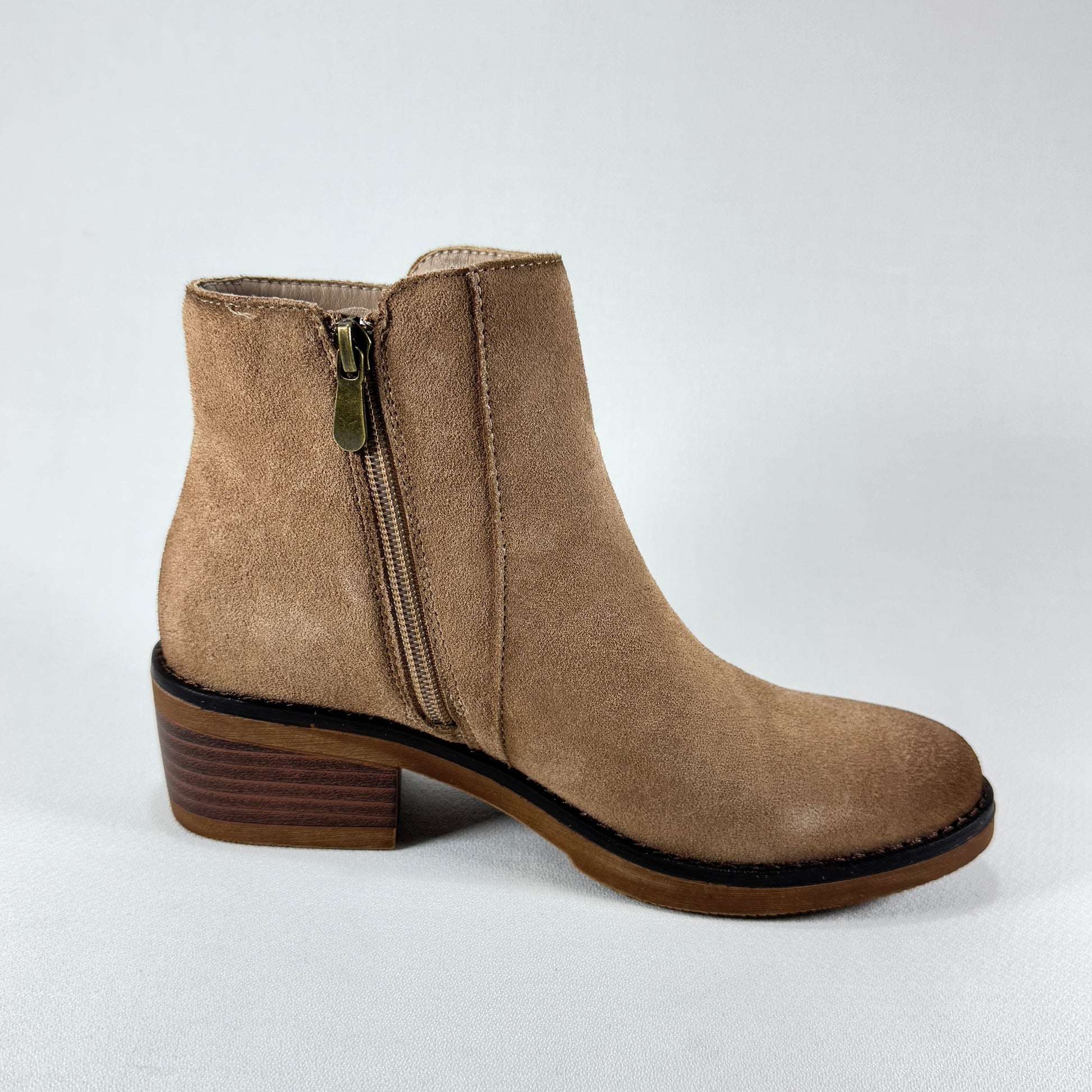Diseño Práctico: El cierre de cremallera lateral facilita un calce rápido y cómodo, mientras que el tacón bajo y la suela robusta proporcionan estabilidad y un confort ideal para caminar.