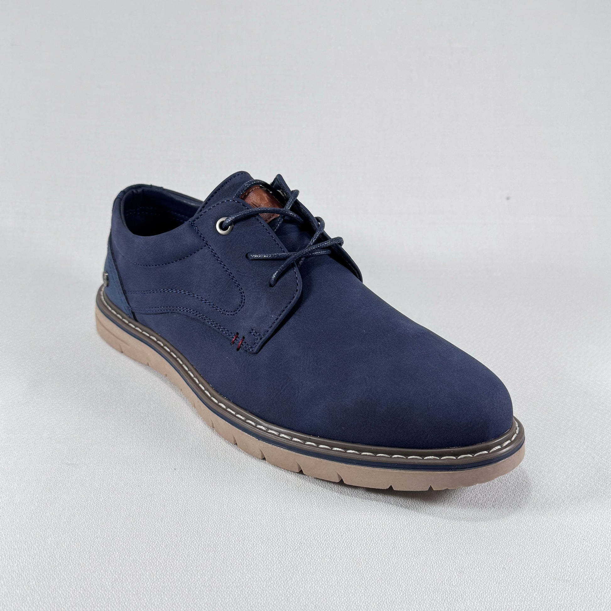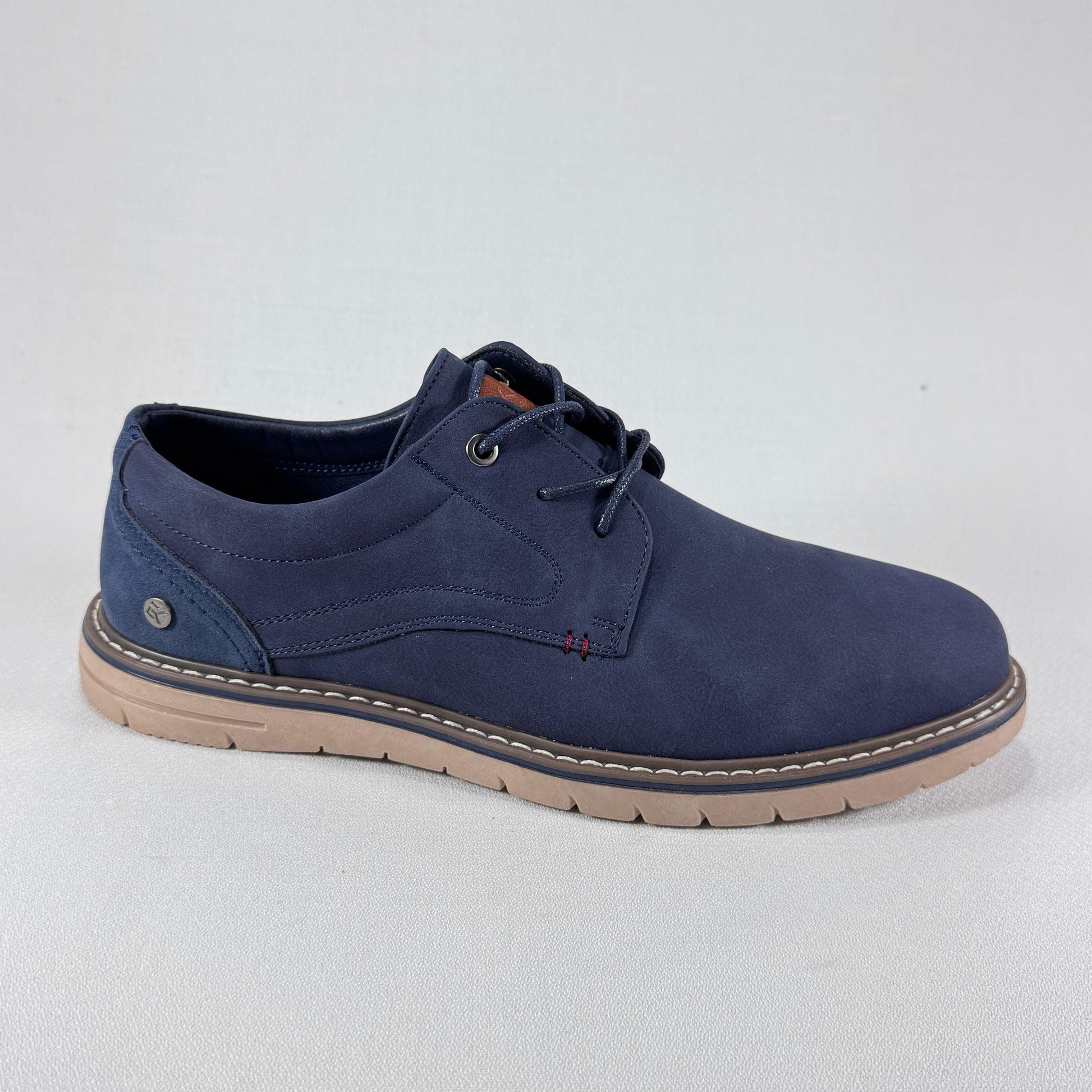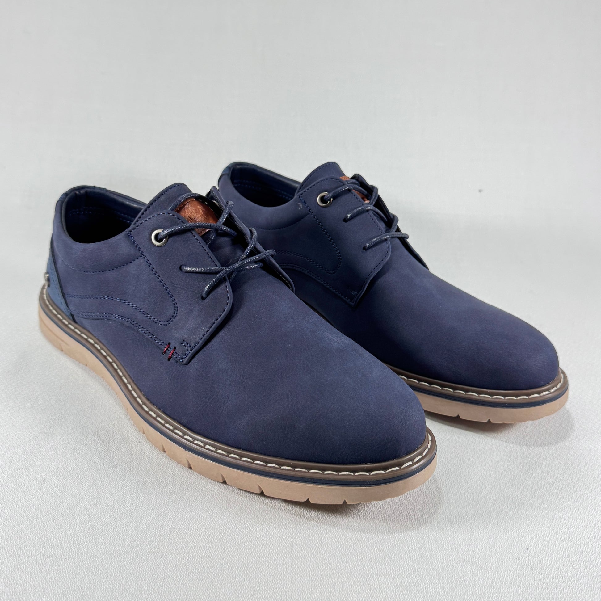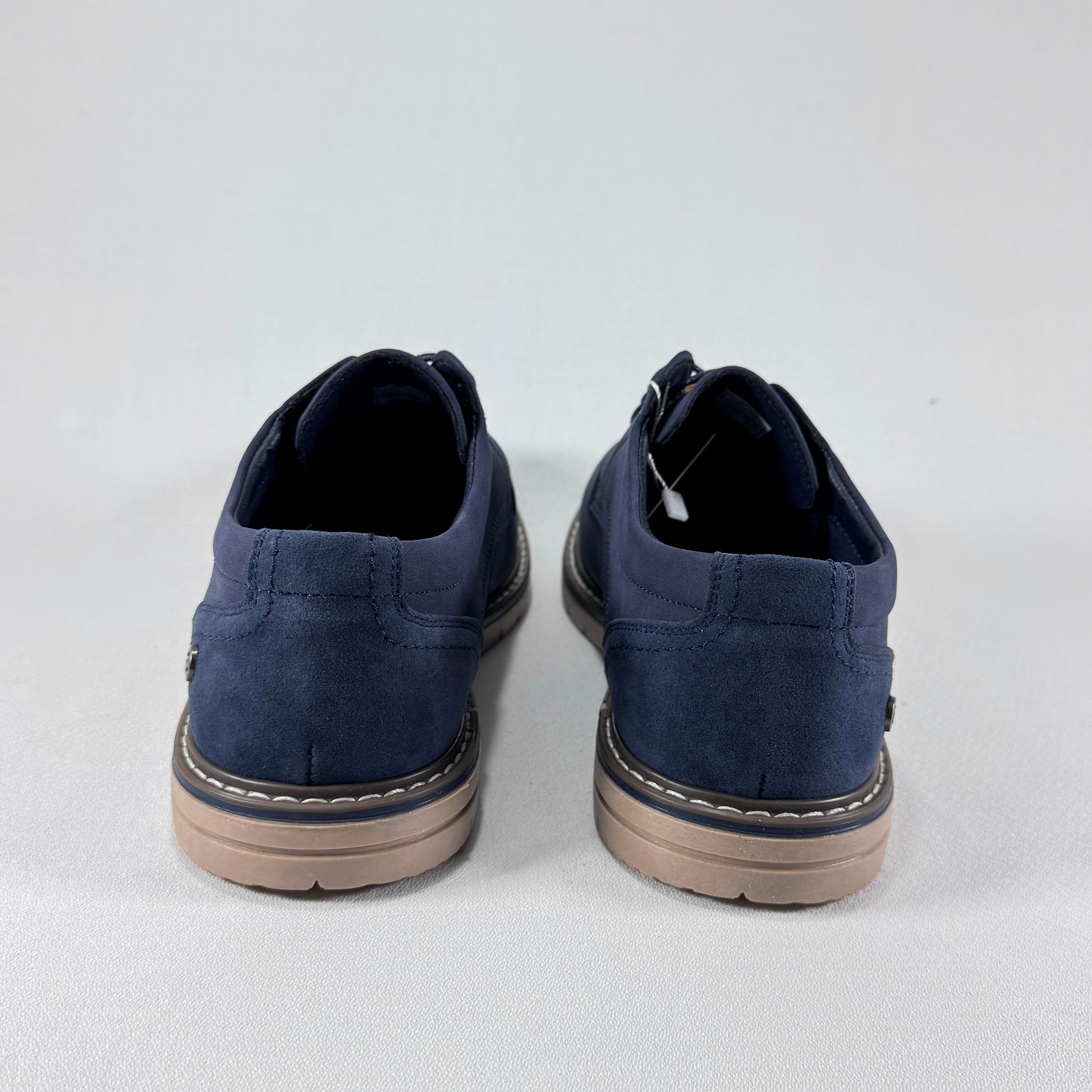 El zapato ETIKA tipo derby en azul marino es la pieza clave para un look casual elegante. Su acabado mate aterciopelado contrasta a la perfección con la suela deportiva bicolor (marrón claro con ribete blanco) para un toque moderno y actual.