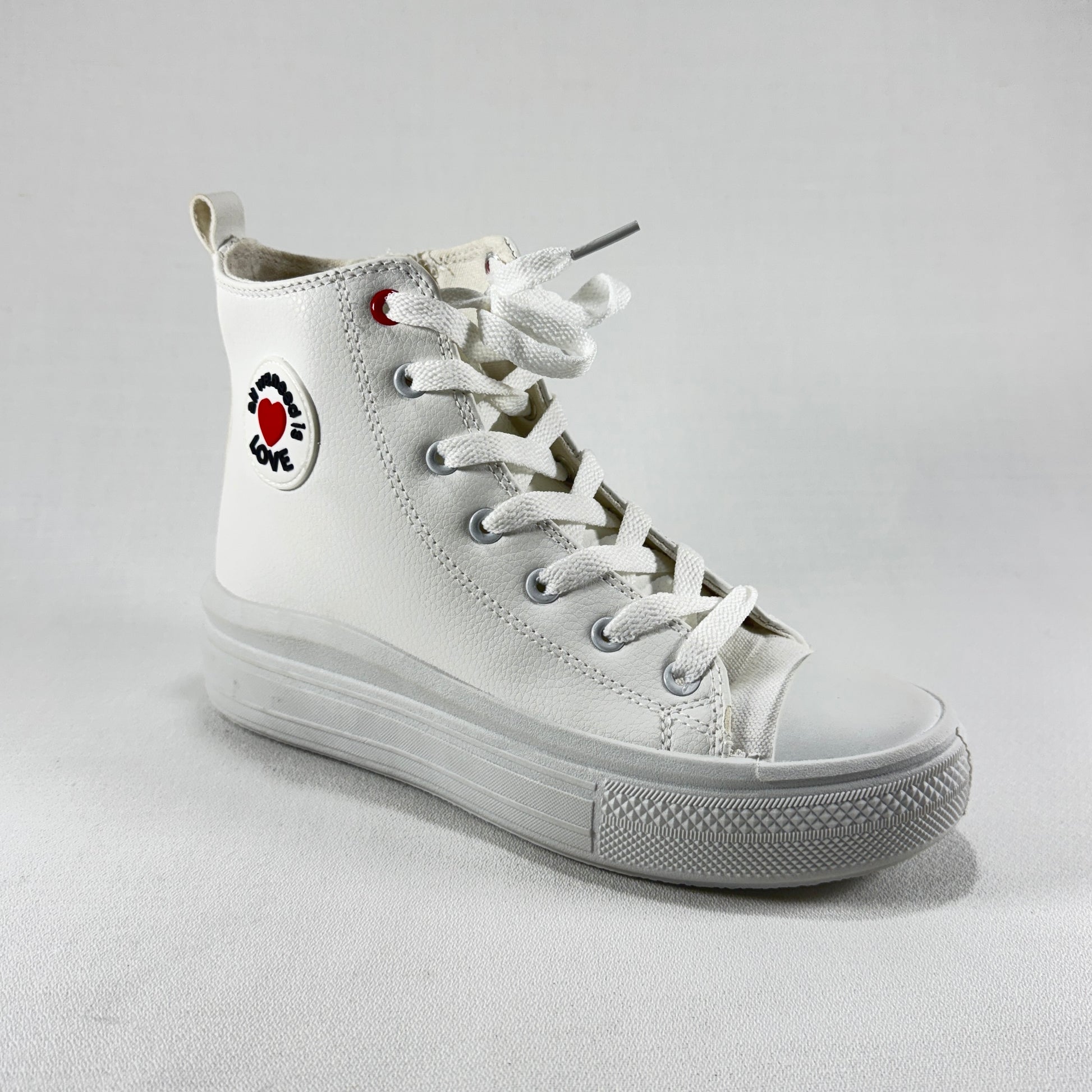 ¡Dale un toque moderno y atrevido a tu estilo diario con estas zapatillas high-top de plataforma en un impecable color blanco!